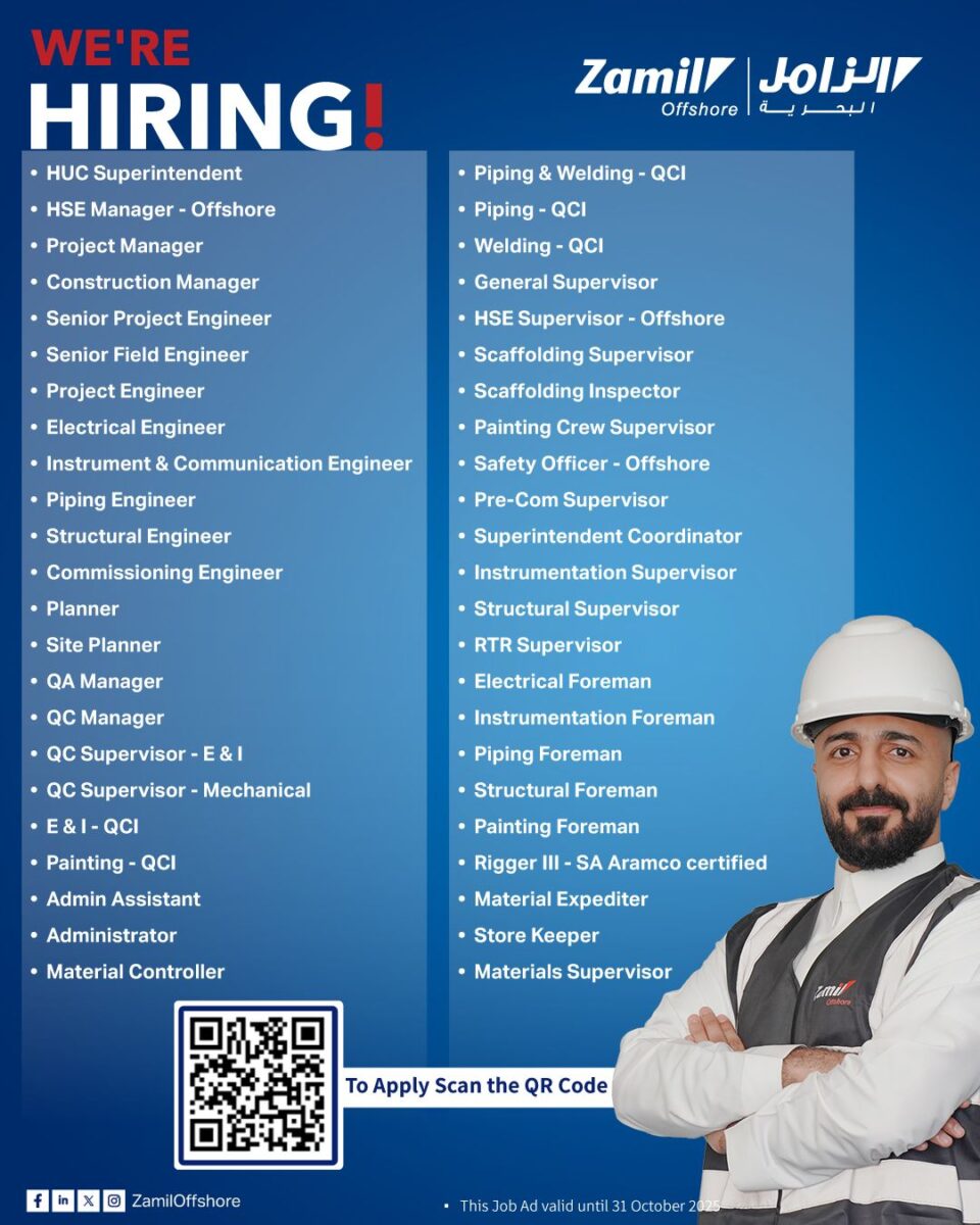 🔍 للتقديم يُرجى مسح رمز QR الموجود في الإعلان أو زيارة صفحة الشركة الرسمية على LinkedIn: ZamilOffshore