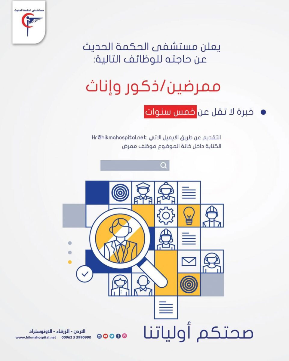 وظائف ممرضين – مستشفى الحكمة الحديث – الزرقاء 2025