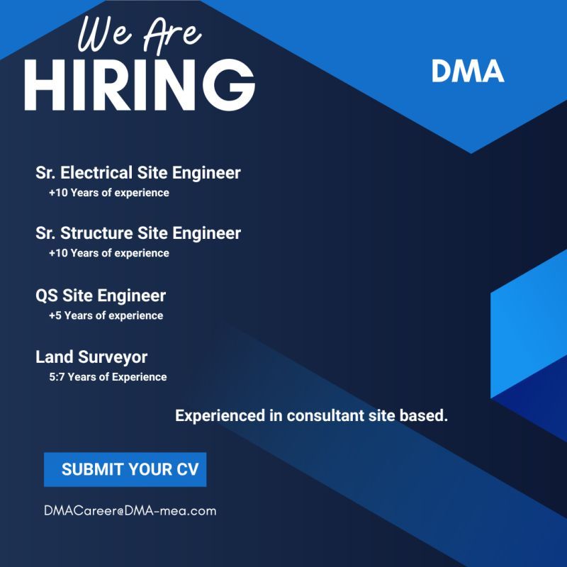 تعلن شركة DMA عن توفر شواغر هندسية في مشاريعها للعام 2025، وتبحث عن كفاءات متمرسة للعمل في مواقع العمل ضمن بيئة استشارية احترافية.
