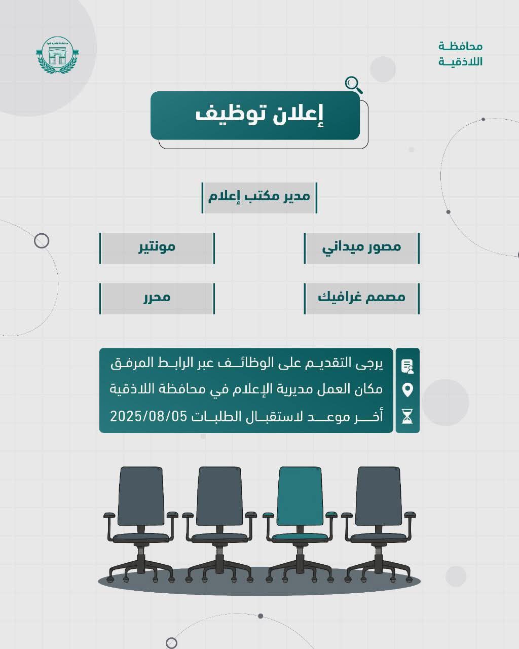 📢 إعلان توظيف رسمي | مديرية الإعلام – محافظة اللاذقية