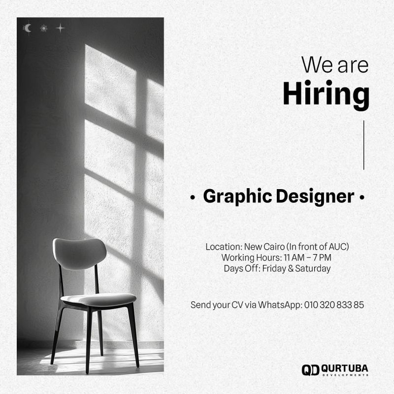 إذا كنت تبحث عن وظيفة في مجال التصميم الجرافيكي داخل بيئة إبداعية ومحترفة، فإن شركة قرطبة للتطوير العقاري تعلن عن حاجتها إلى Graphic Designer للانضمام لفريقها في القاهرة الجديدة – أمام الجامعة الأمريكية (AUC).
