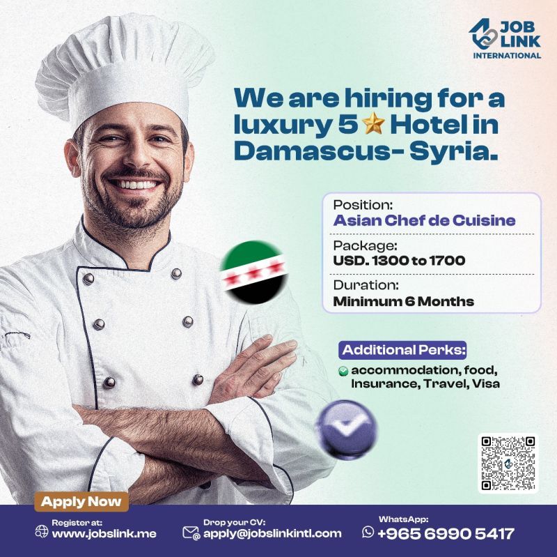 فندق فاخر ⭐⭐⭐⭐⭐ في دمشق – سوريا يعلن عن توفر شاغر لوظيفة: