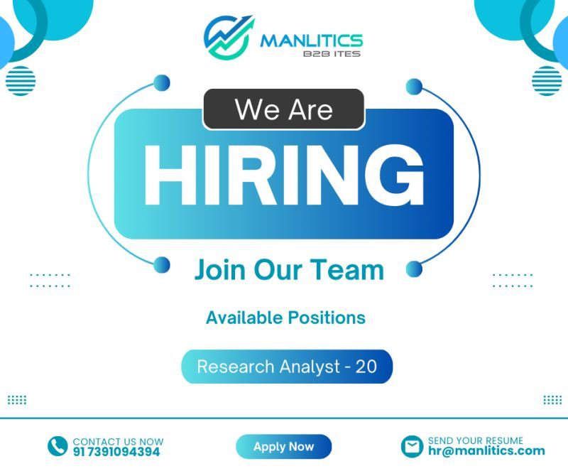 تبحث شركة Manlitics B2B ITES عن مرشحين متميزين للانضمام إلى فريقها في وظيفة:
