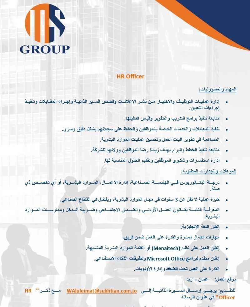 مع ذكر “HR Officer” في عنوان الرسالة.