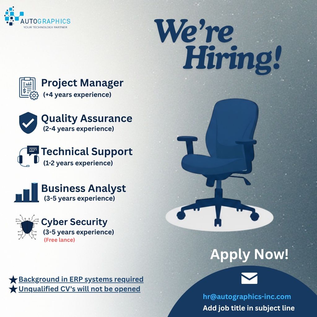 تُعلن شركة Autographics، الرائدة في حلول التحول الرقمي منذ أكثر من 37 عامًا، عن حاجتها لتوظيف كفاءات في التخصصات التالية: