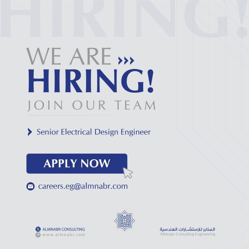 تعلن شركة المنابر للاستشارات الهندسية عن حاجتها إلى مهندس تصميم كهرباء أول (Senior Electrical Design Engineer) ذو خبرة وكفاءة عالية للانضمام إلى فريقها المتخصص في مصر.