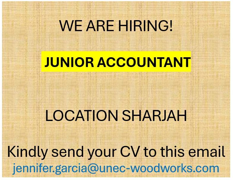 تُعلن شركة UNEC Woodworks عن توفر وظيفة محاسب مبتدئ (Junior Accountant) للعمل في الشارقة لعام 2025.