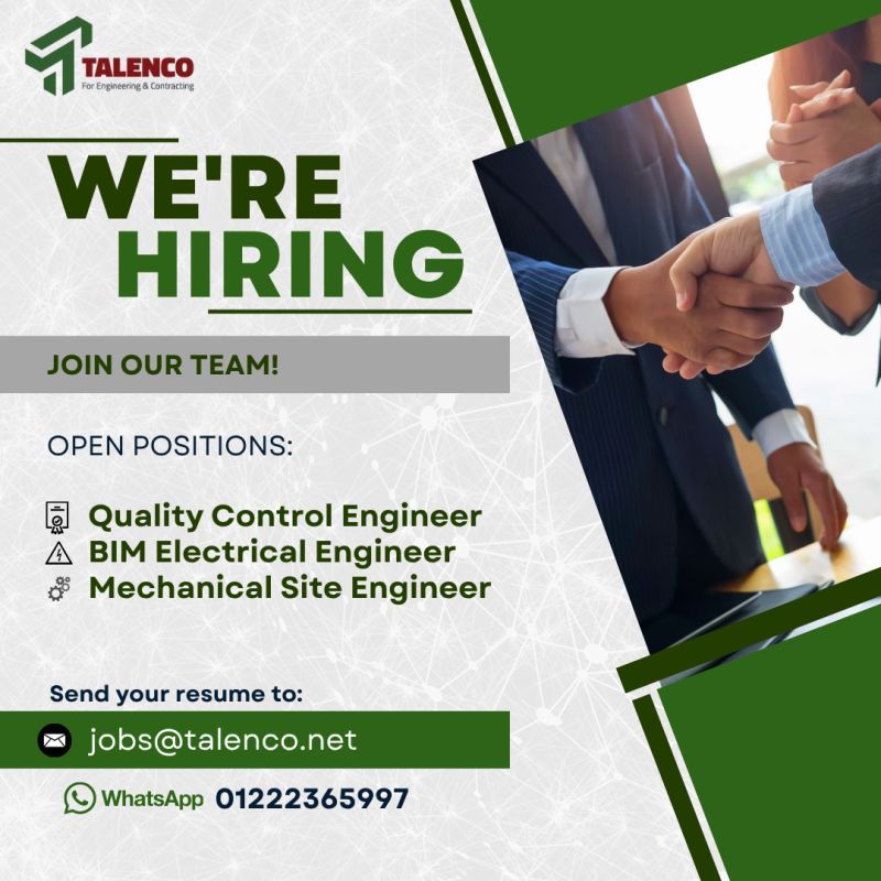 📢 وظائف هندسية شاغرة في شركة تالينكو بالقاهرة – 2025