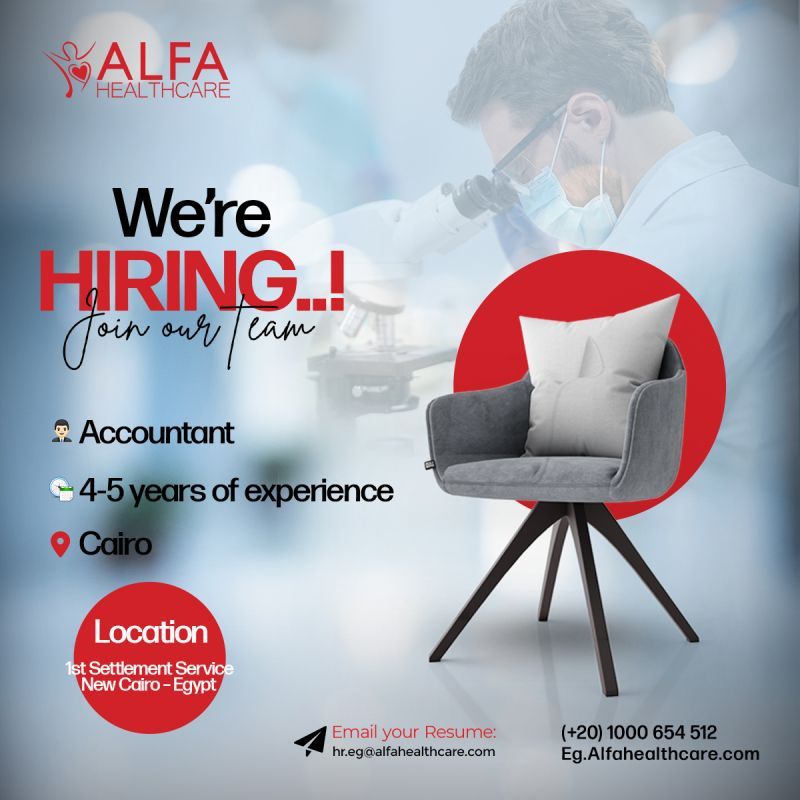 تُعلن شركة Alfa Healthcare عن توفر فرصة وظيفية مميزة لتعيين محاسب ذو خبرة في القاهرة، ضمن فريقها في مجال الرعاية الصحية للعام 2025.