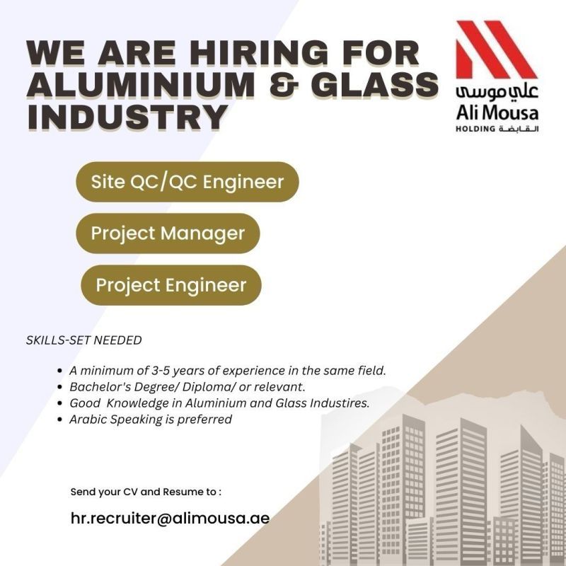 تُعلن شركة علي موسى الرائدة في مجال الألمنيوم والزجاج عن توفر فرص وظيفية في دبي للعام 2025، وذلك ضمن التخصصات التالية:
