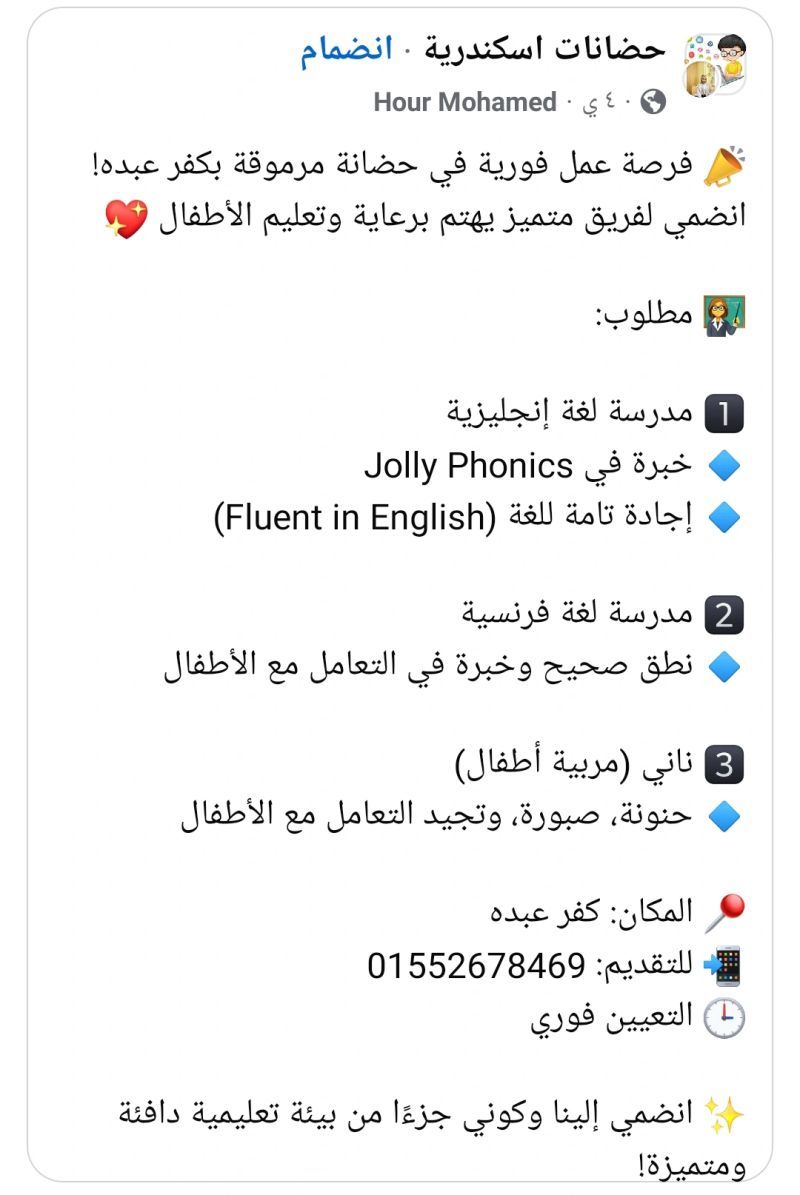 ✅ معلمة لغة إنجليزية (خبرة في Jolly Phonics – إجادة تامة)
