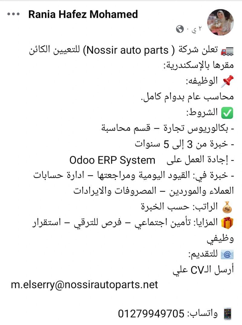 📍 Nassir Auto Parts – محاسب عام – الإسكندرية