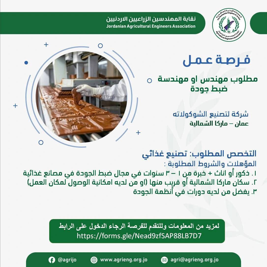 فرصة مناسبة للمهندسين الزراعيين من ذوي التخصص الغذائي الباحثين عن عمل في الأردن لعام 2025.