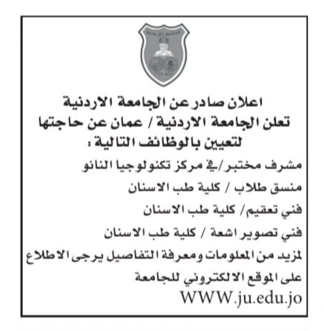 مطلوب للتعيين في كلية طب الأسنان في الجامعة الأردنية: