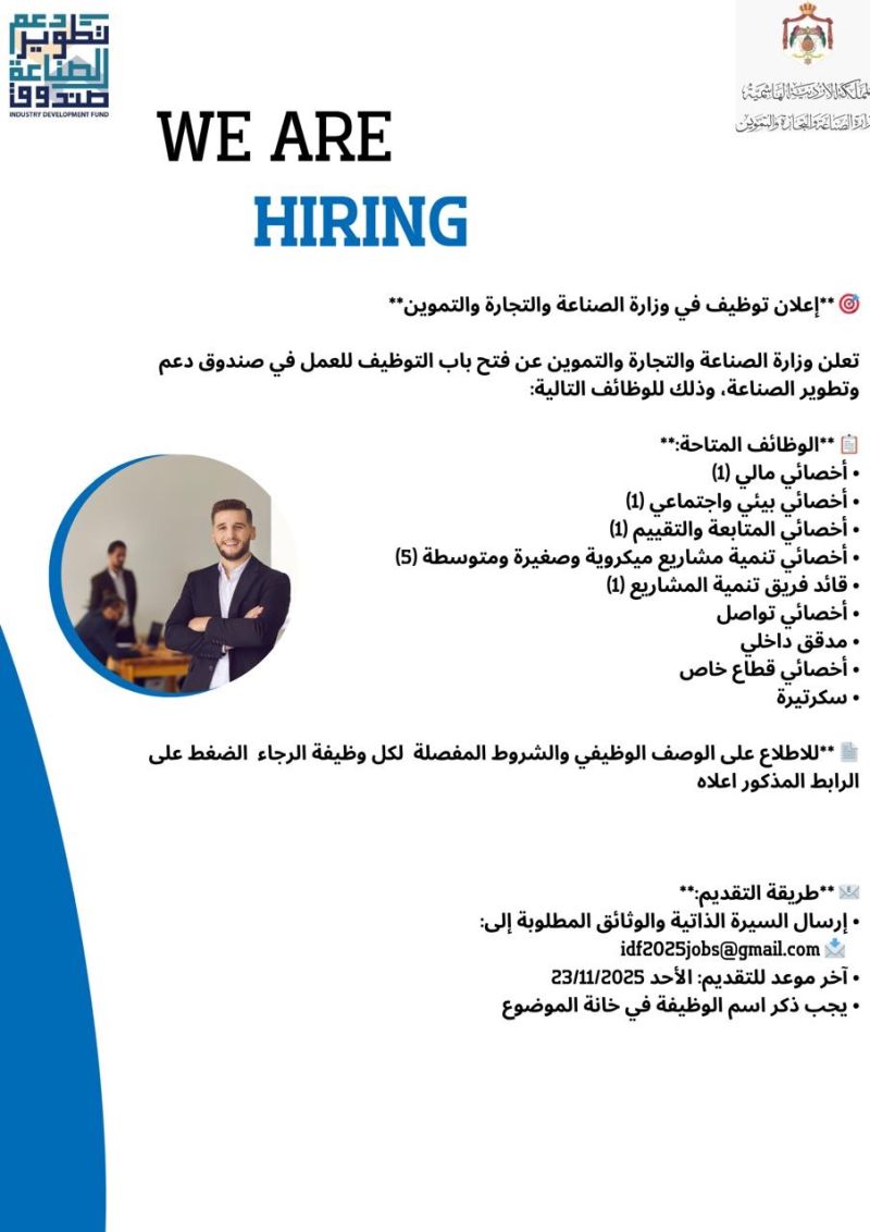 🎯 إعلان توظيف في وزارة الصناعة والتجارة والتموين – الأردن 2025