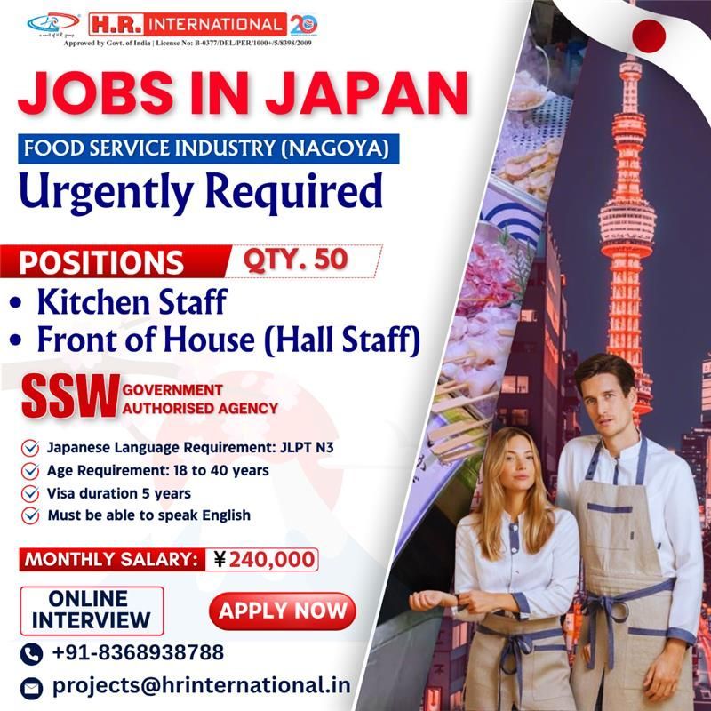 تعلن H.R. International عن توفر 50 وظيفة شاغرة في مجال الخدمات الغذائية بمدينة ناغويا، ضمن برنامج العمال المهرة (SSW) المعتمد من الحكومة اليابانية.