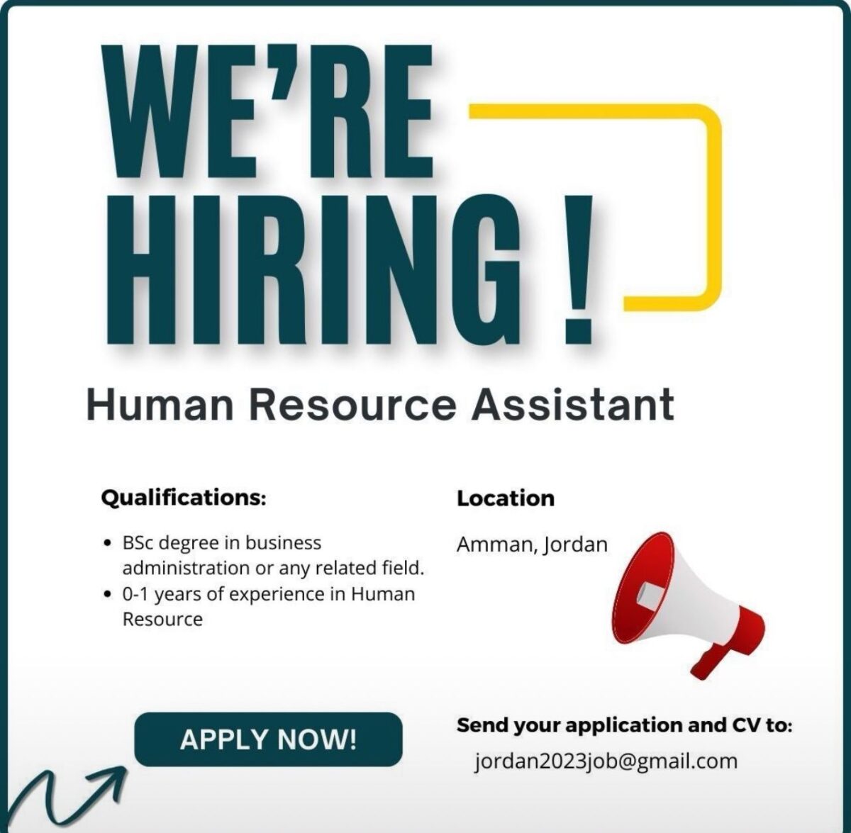 مع كتابة (HR Assistant) في عنوان الرسالة.