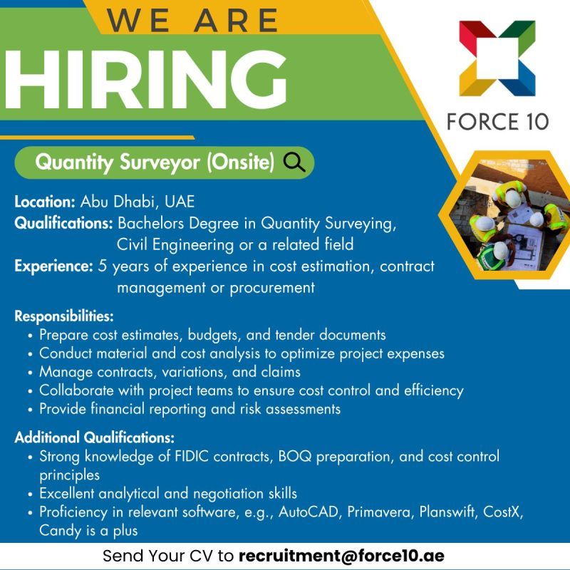 ✅ المسمى الوظيفي: Quantity Surveyor (Onsite)