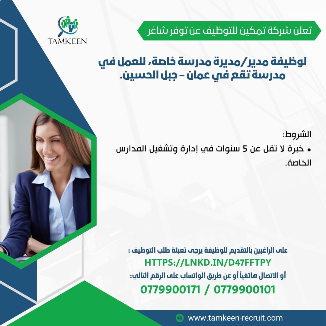 مطلوب مدير/ة مدرسة خاصة للعمل في عمان