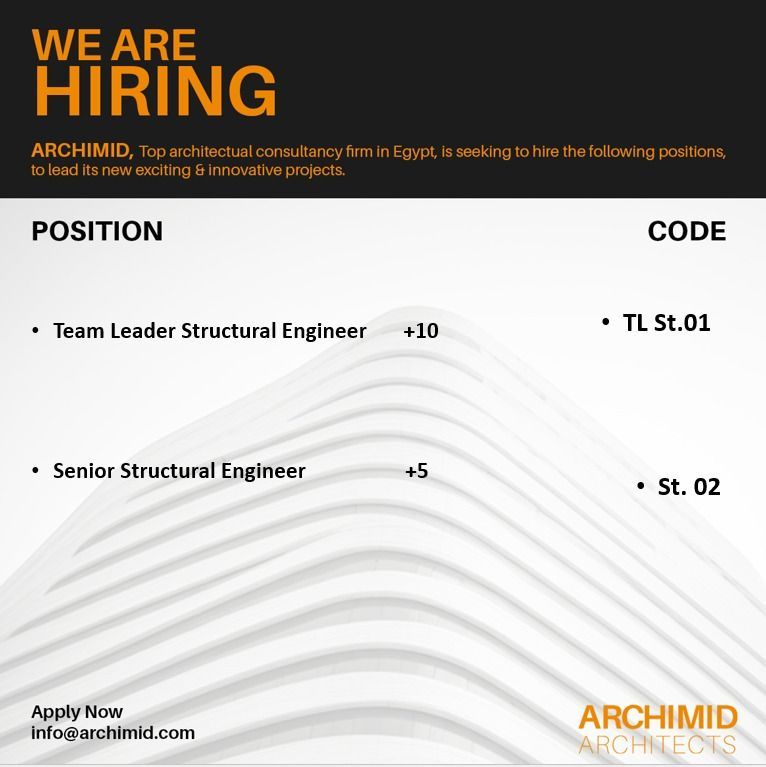 🏗️ تعلن شركة ARCHIMID، إحدى أبرز شركات الاستشارات المعمارية في مصر، عن فرص توظيف مميزة لقيادة مشاريعها الجديدة والمبتكرة.
