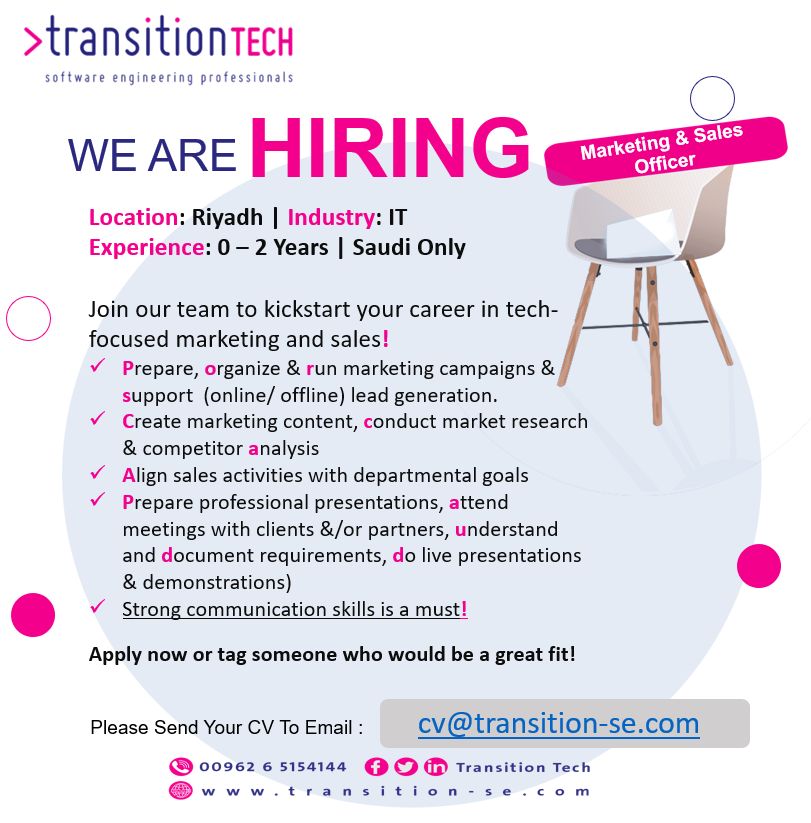 انضم إلى فريق TransitionTech وابدأ مسيرتك المهنية في التسويق والمبيعات التقنية!
