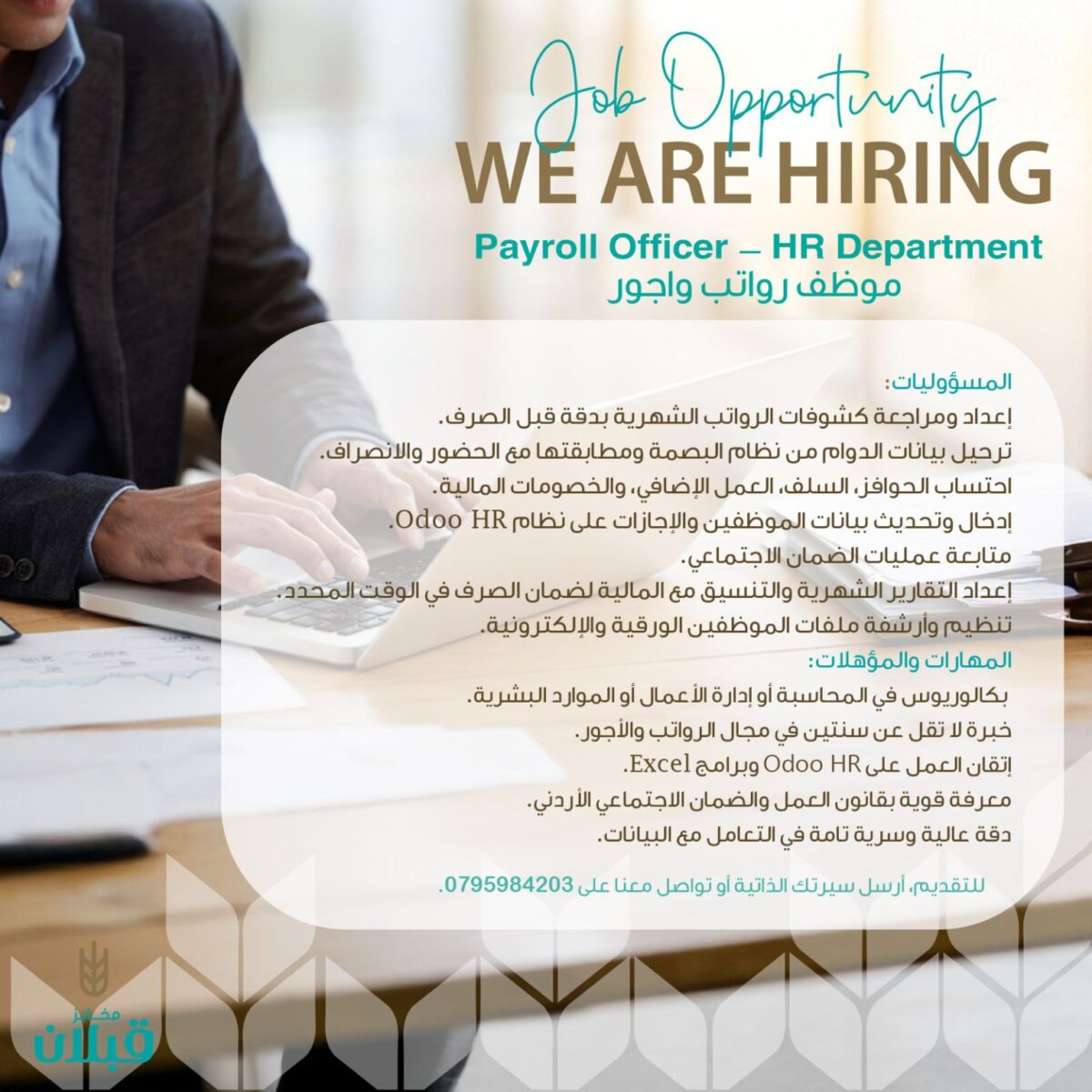 📢 فرصة عمل – موظف رواتب وأجور | قسم الموارد البشرية