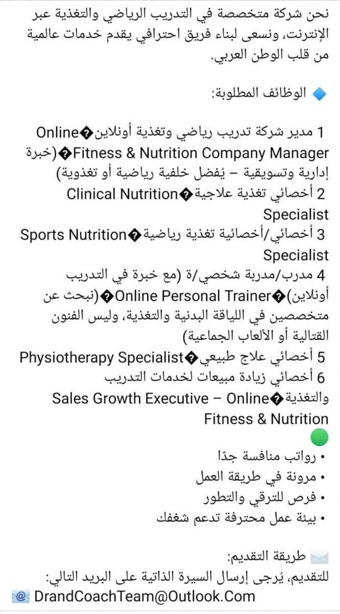 ✅ وظائف تدريب وتغذية عن بُعد