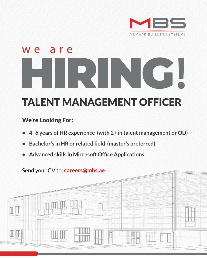 شركة Memaar Building Systems (MBS) تعلن عن توفر فرصة عمل متميزة للانضمام إلى فريق الموارد البشرية لديها في الإمارات.