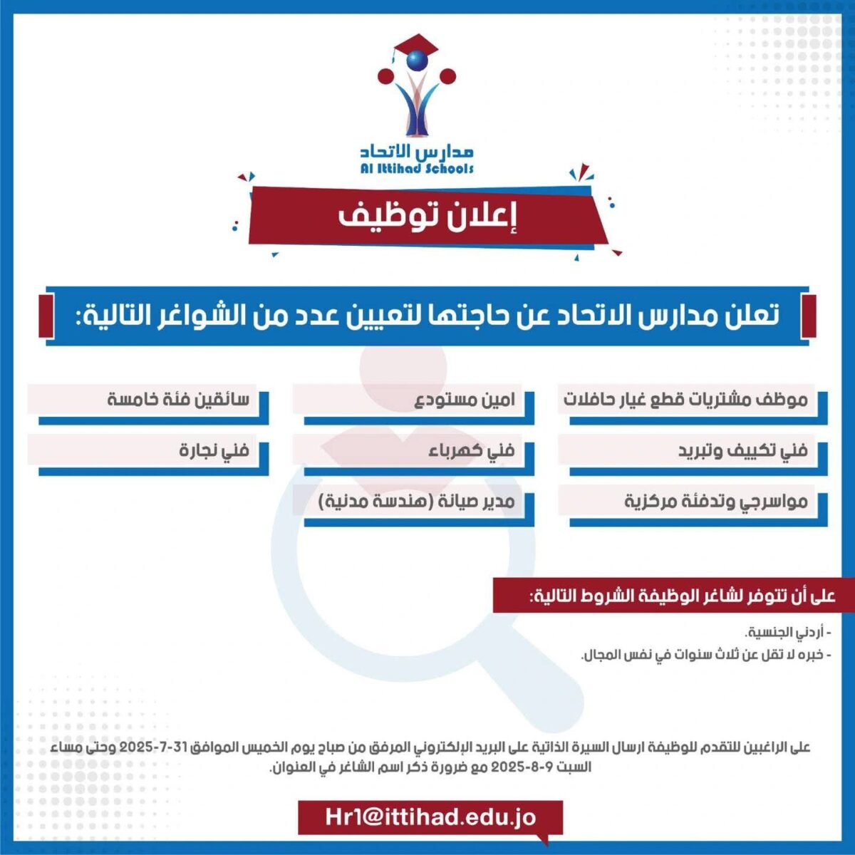 🌟 فرص عمل مميزة في مدارس الاتحاد – الأردن
