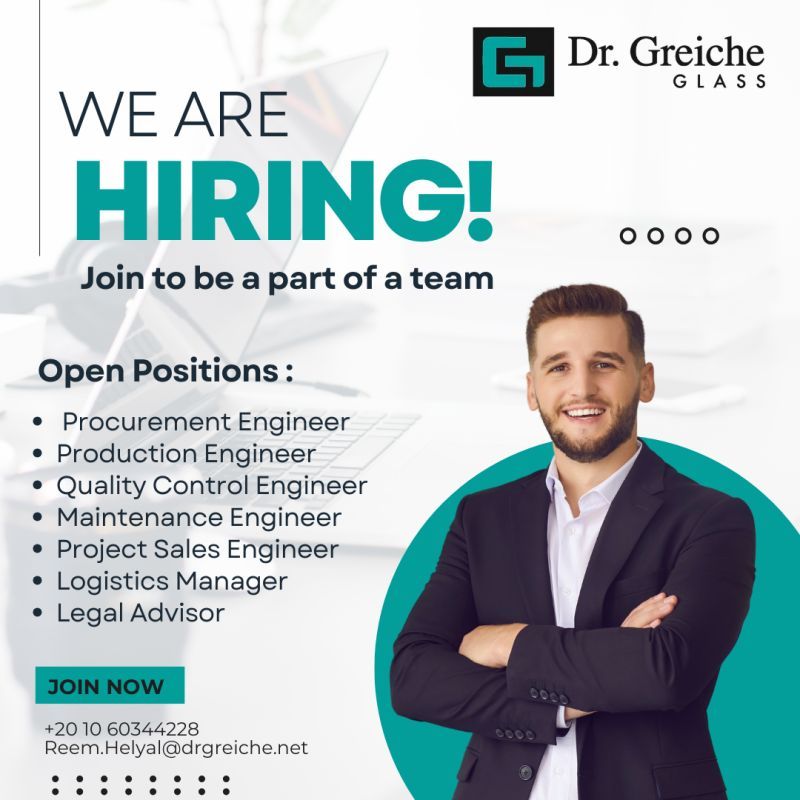 تعلن شركة Dr. Greiche Glass عن توفر مجموعة من الوظائف الشاغرة في مختلف المجالات الهندسية والإدارية.