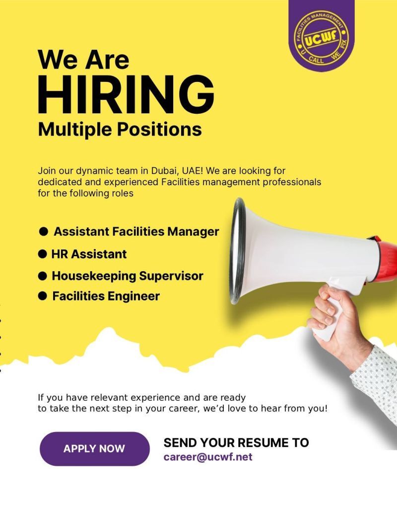 شركة UCWF Facilities Management تعلن عن فرص عمل متعددة في مجال إدارة المرافق.