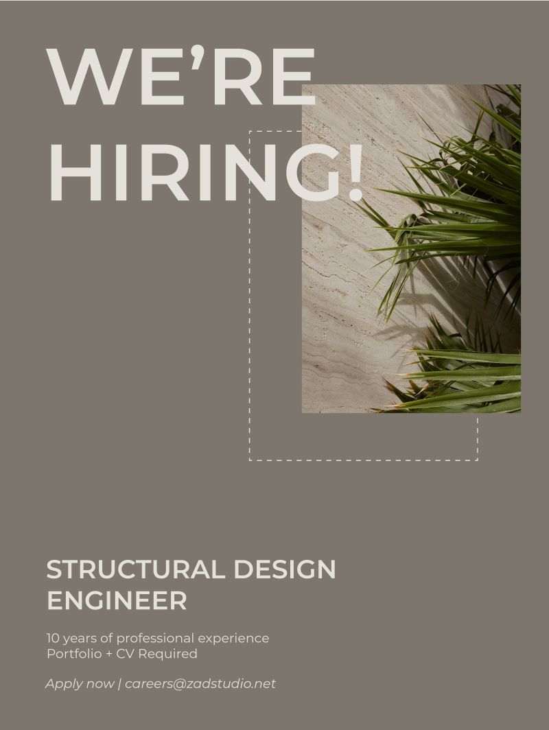 شركة ZAD Studio تبحث عن مهندس تصميم إنشائي مبدع يتمتع بخبرة 10 سنوات في المجال.