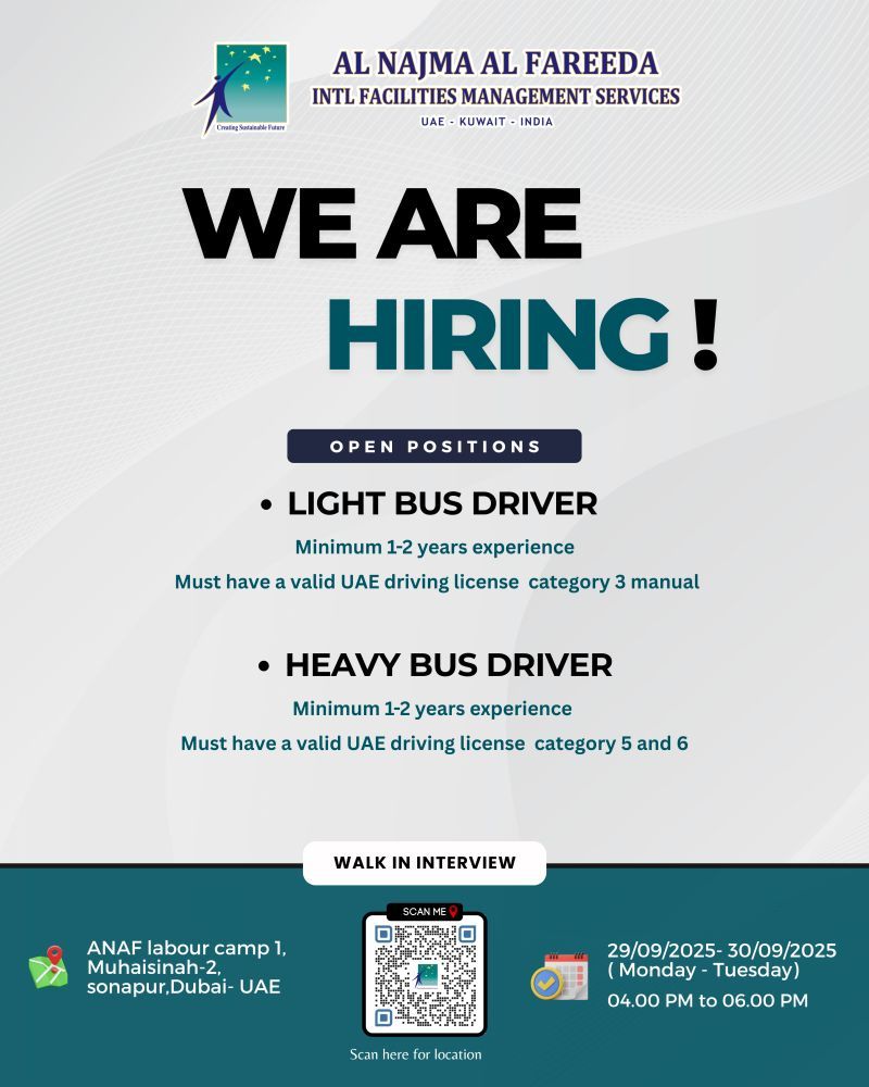 🚐 فرص عمل في دبي – شركة AL NAJMA AL FAREEDA