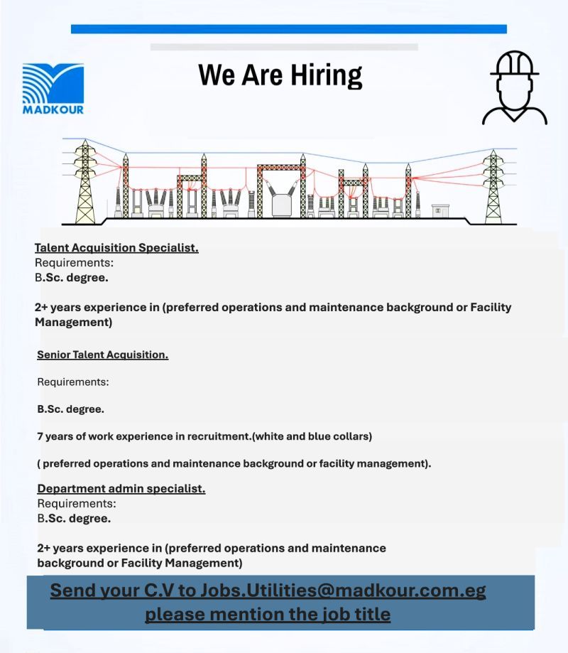 خبرة لا تقل عن سنتين في التوظيف (يفضّل خلفية في التشغيل والصيانة أو إدارة المرافق).