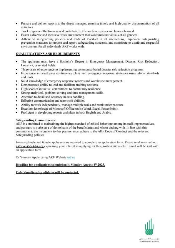 يرجى تعبئة نموذج AKF Job Application عبر الرابط الرسمي، ثم إرسال النموذج المعبأ إلى البريد الإلكتروني: