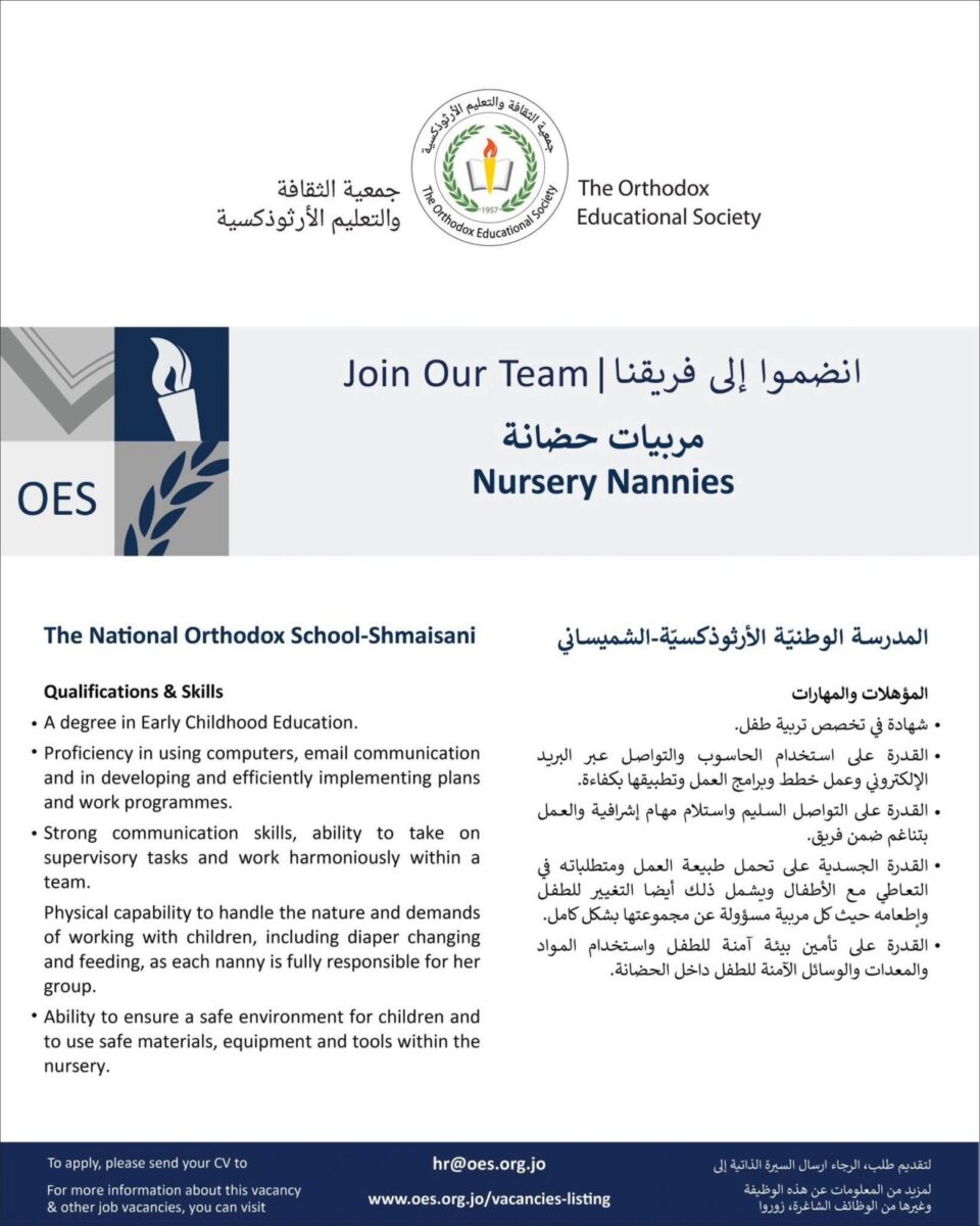 تسعى المدرسة الوطنية الأرثوذكسية – الشميساني إلى توظيف مربيات حضانة مؤهلات يمتلكن الشغف والعطاء في رعاية الأطفال وتنميتهم.