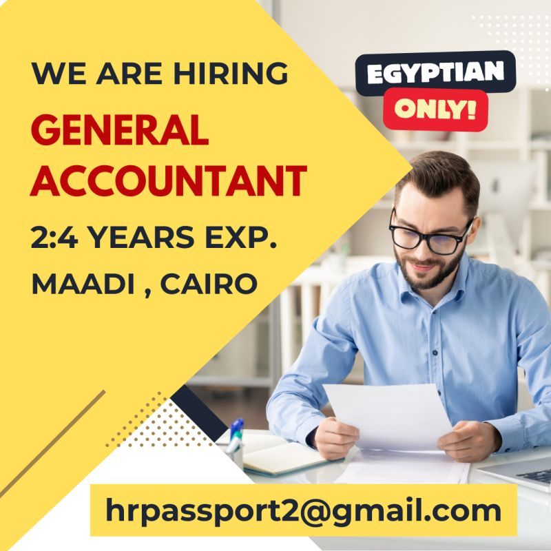 نحن نبحث عن محاسب عام (General Accountant) محترف للانضمام إلى فريقنا في المعادي – القاهرة 🇪🇬