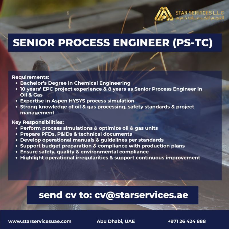 10 سنوات خبرة في مشاريع EPC و8 سنوات كمهندس عمليات أول في قطاع النفط والغاز