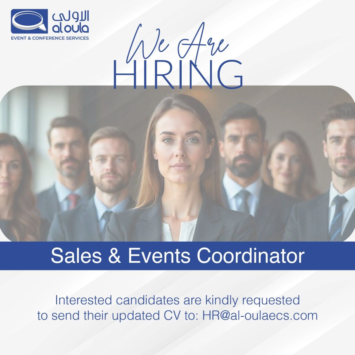 تعلن شركة الأولى لخدمات الفعاليات والمؤتمرات عن توفر شاغر منسق مبيعات وفعاليات للانضمام إلى فريقها في عمان.