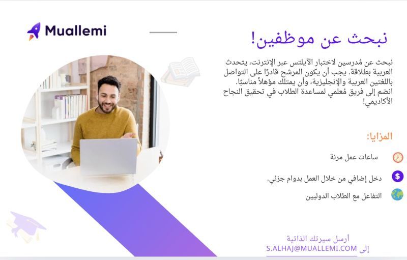 نبحث في Muallemi عن مدرسين لتدريس الإنجليزية عبر الإنترنت ✅
