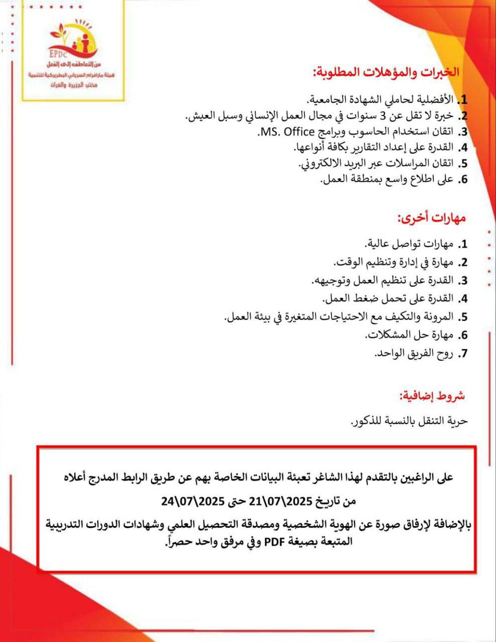 📢 إعلان وظيفة شاغرة – مسؤول سبل العيش | قطاع الحماية