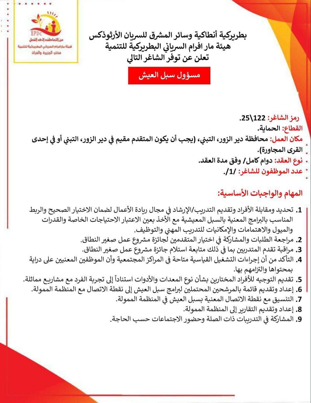 🔹 مسؤول سبل العيش – Livelihoods Officer