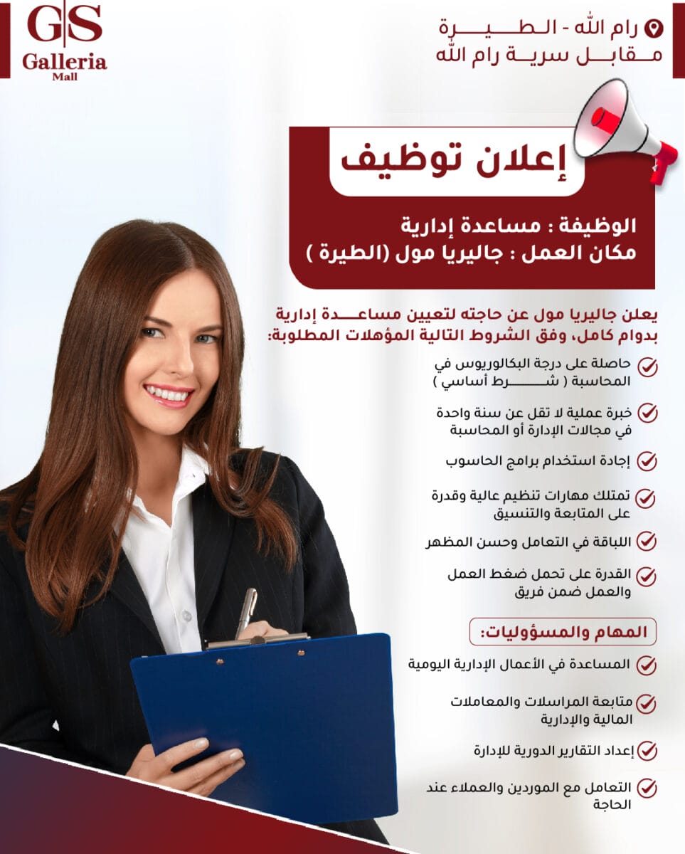 📢 إعلان توظيف – مساعدة إدارية – جاليريا مول رام الله