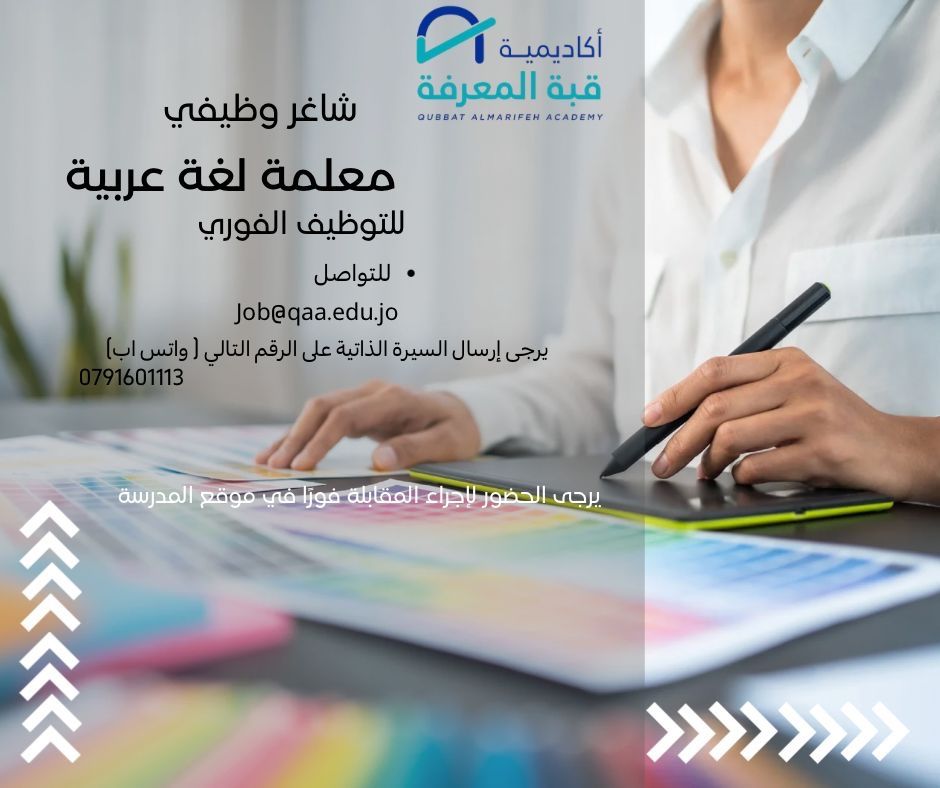 📢 إعلان توظيف – معلمة لغة عربية (فرصة فورية)