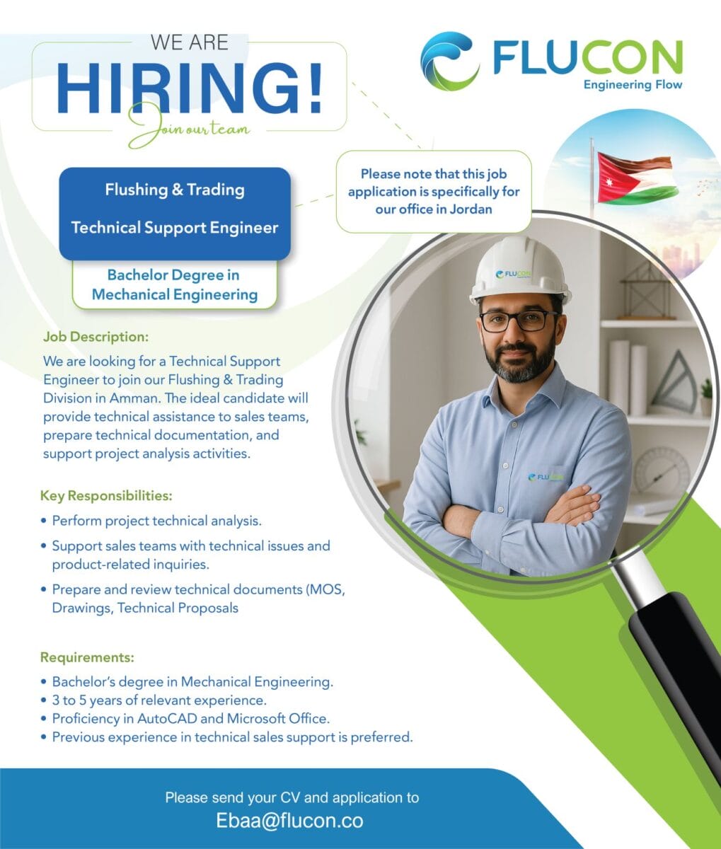 فرصة عمل شاغرة: مهندس دعم فني في FLUCON – عمان