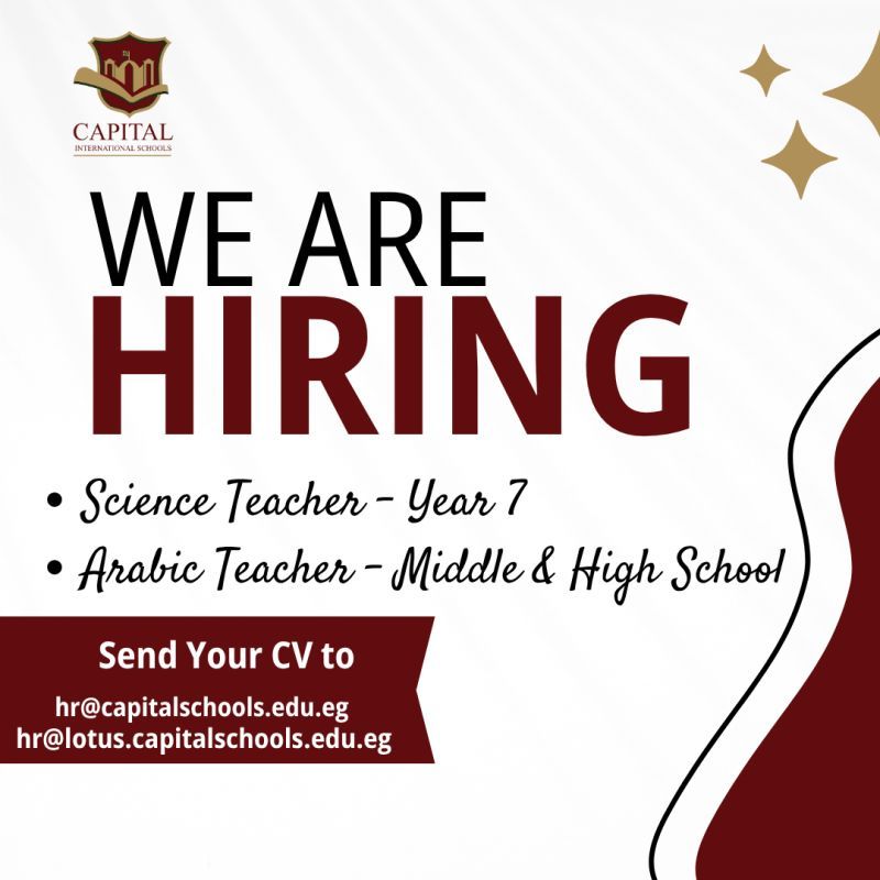 📢 مدارس كابيتال الدولية تعلن عن فتح باب التوظيف للعام الدراسي الجديد!