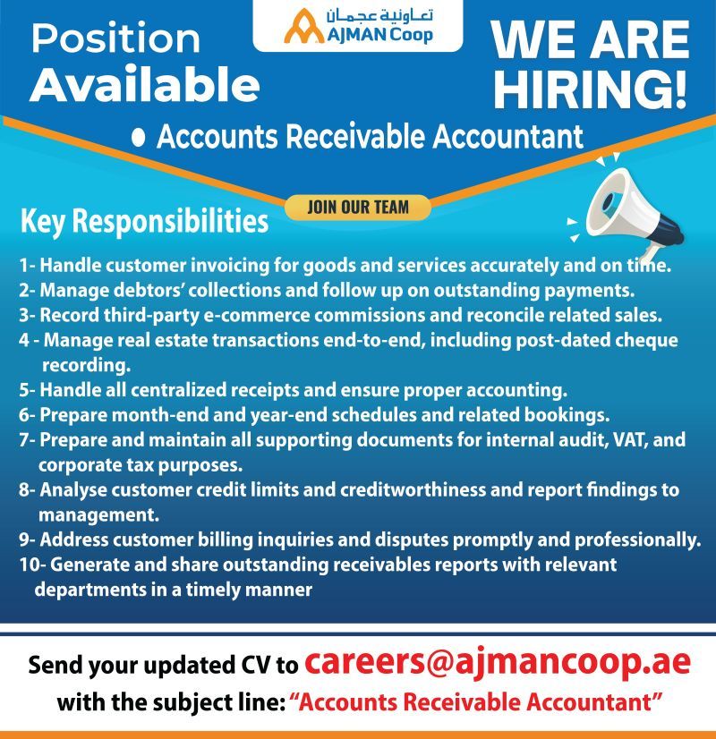 مع كتابة المسمى الوظيفي في العنوان: Accounts Receivable Accountant