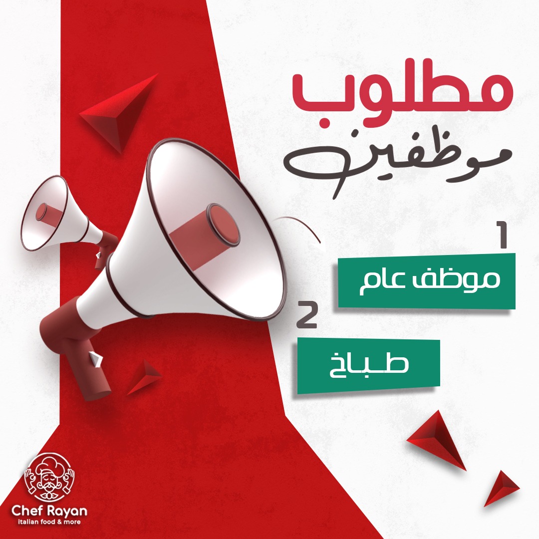 مطعم Chef Rayan يفتح باب التوظيف لشغل الوظائف التالية: