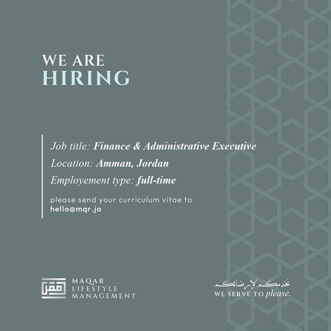 تعلن الشركة عن توفر شاغر تنفيذي مالي وإداري (Finance & Administrative Executive) للانضمام إلى فريقها في عمّان – الأردن بدوام كامل.