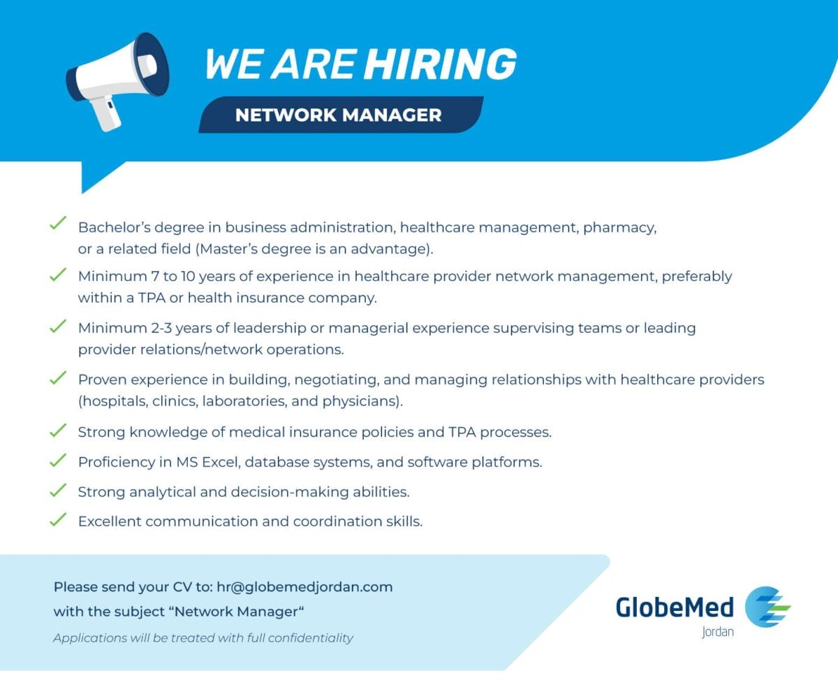 فرصة عمل: مدير شبكة في قطاع التأمين الصحي